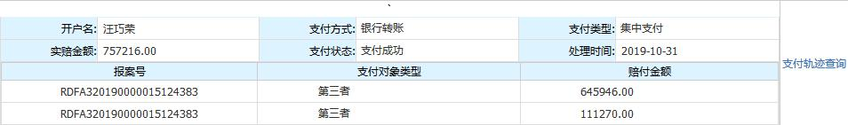 我公司通过微信理赔有效收集材料、快速达成协议,在25个工作日内,通过转账方式将76万余元巨额赔款送达受害人家属手中,赢得了客户、受害人家属的高度赞誉。