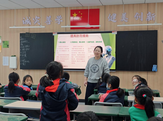 课堂上,工作人员结合小学生的认知特点,用生动易懂的语言,聚焦校园和家庭中可能遇到的诈骗场景,系统讲解了游戏装备诈骗、网购退款诈骗等传统诈骗手法,并引入了“AI换脸”“声音合成”等新型技术诈骗案例,使孩子们对诈骗手段的多样性与隐蔽性有了直观认识。